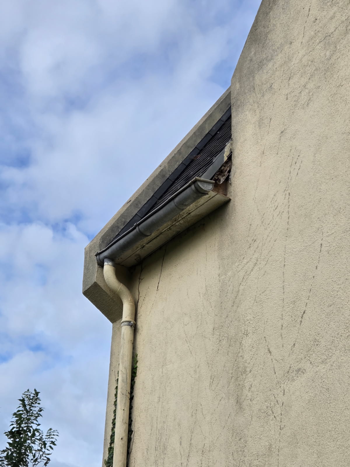 Dans l'un des angles de la toiture, il manque une petite partie (voir photo).